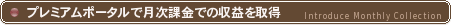 プレミアムポータルでは、特にマイポータルから収益を上げる機能を提供しているのが特徴です。新しい月次課金での安定したビジネスモデルをご提供します。